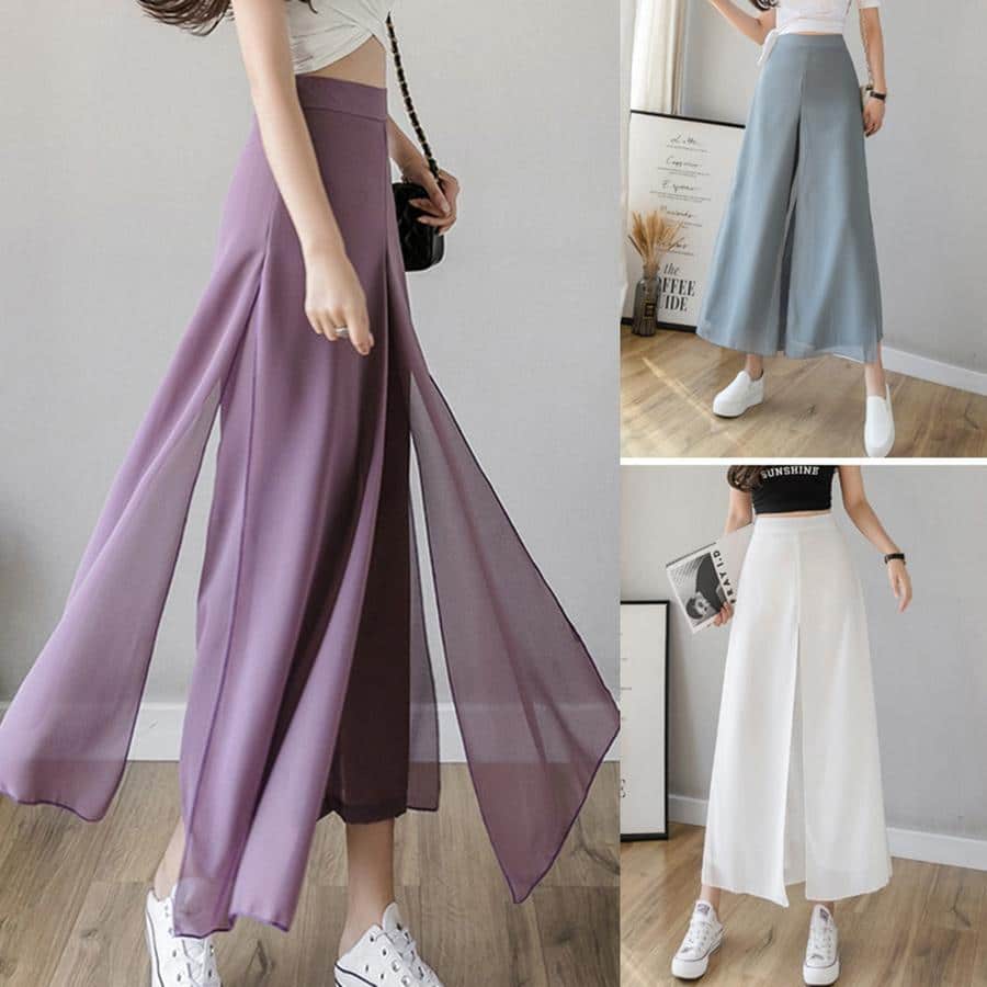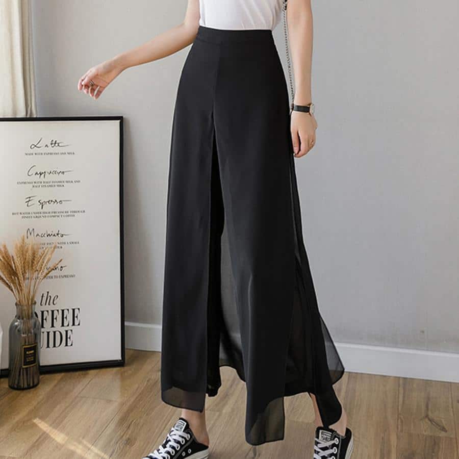 Hlače širokih nogavica od ledene svile od šifona