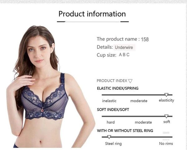 - Veličina grudi: 34, 36, 38, 40, 42, 44, 46, 48